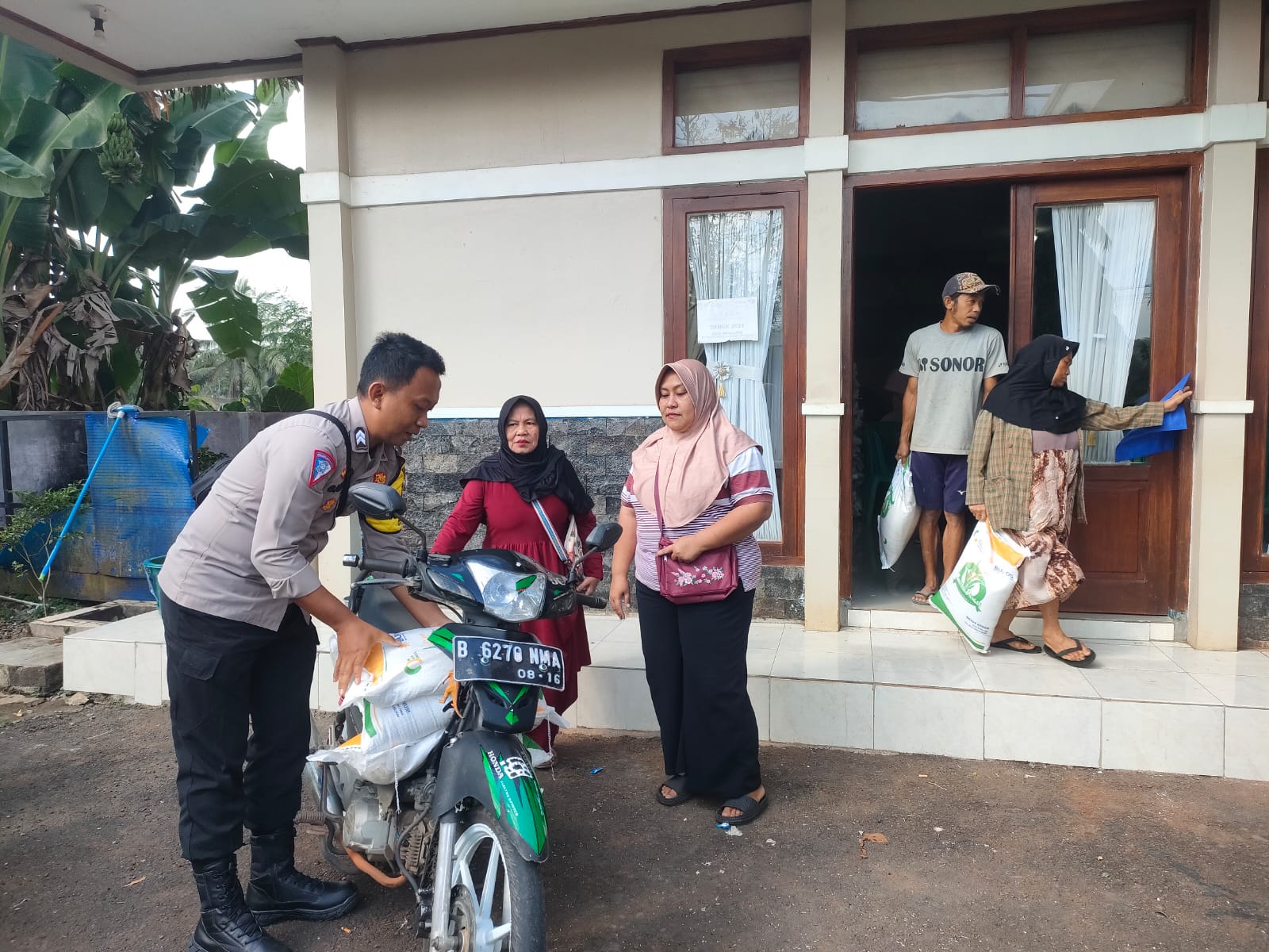 CIAMIS ~ Personel Polsek Sukadana Polres Ciamis Polda Jabar melaksanakan pengamanan kegiatan penyaluran bantuan beras cadangan dari Pemerintah di Desa Sukadana. Pengamanan ini dilaksanakan di Aula Desa Sukadana, Kecamatan Sukadana, Kabupaten Ciamis, Jawa Barat, Rabu (5/6/2024).