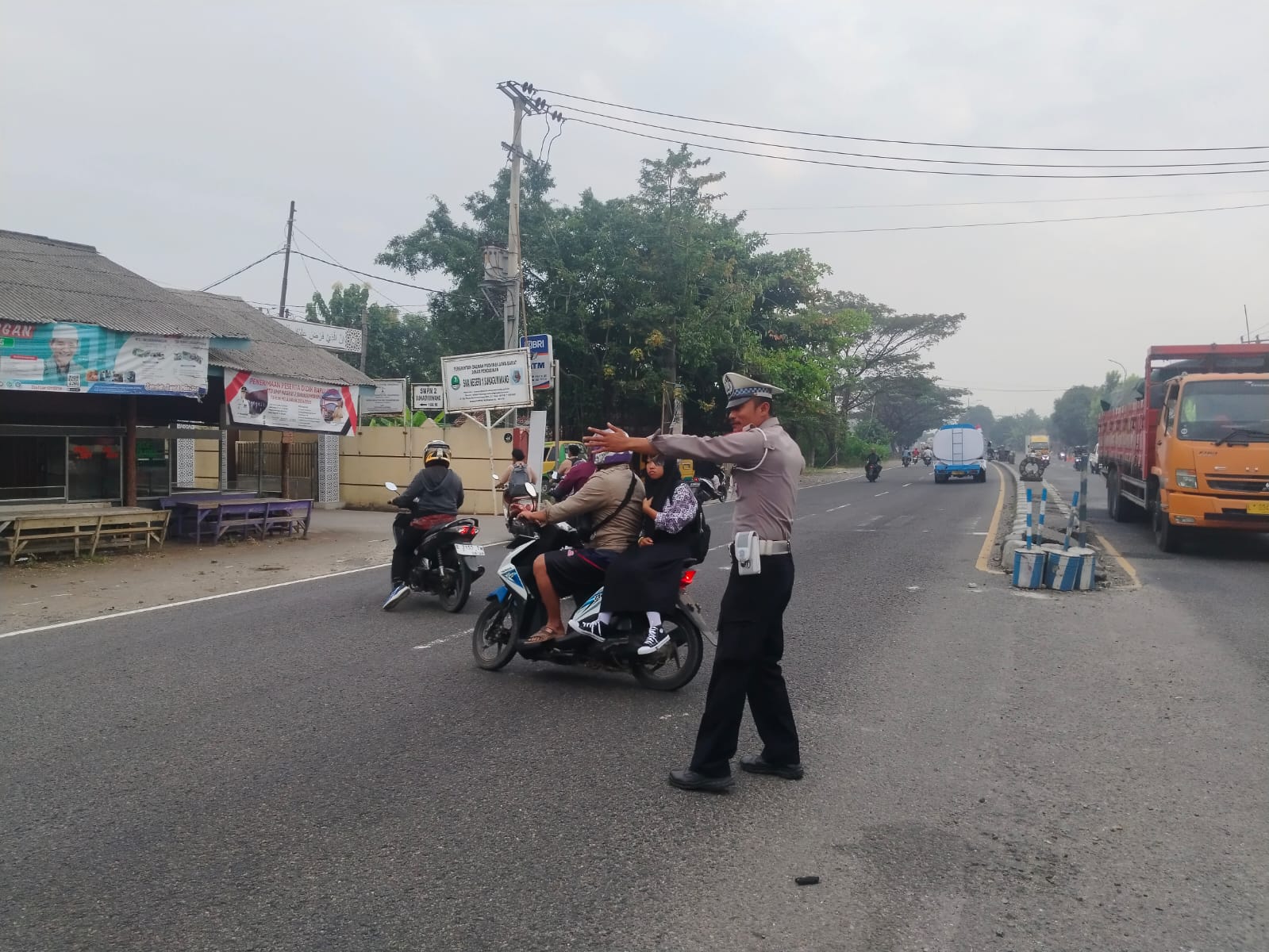 Polsek Sukagumiwang Rutin Laksanakan Pengaturan Lalu Lintas