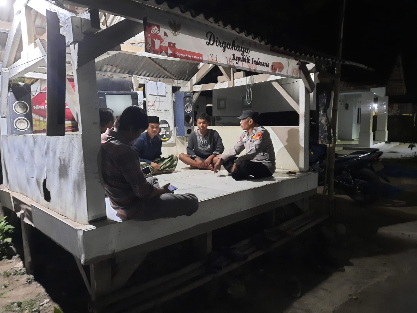Indramayu- Personil Polsek Sukagumiwang jajaran Polres Indramayu Polda Jabar melakukan sambang ke Pos Satuan Keamanan Lingkungan (Satkamling) Wiralodra Presisi di wilayah hukumnya pada Kamis (12/10/2023).