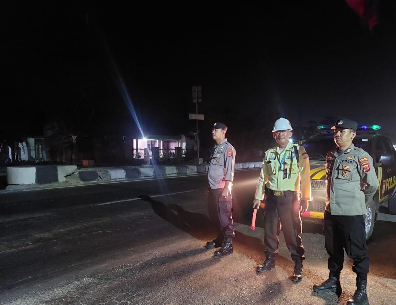 Dalam pelaksanaan patroli malam hari, anggota Polsek Sukra melakukan pemantauan di berbagai titik strategis.