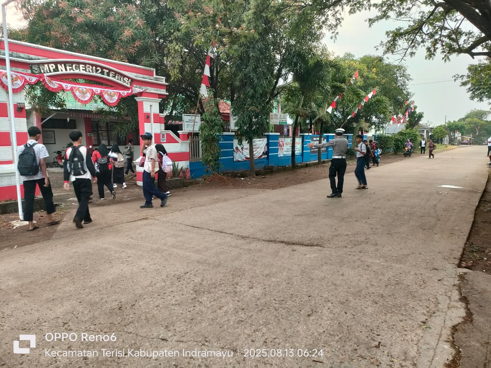 Indramayu – Dalam upaya menciptakan keamanan dan kelancaran lalu lintas di jam rawan pagi hari, personel Polsek Terisi Polres Indramayu Polda Jabar melaksanakan kegiatan Pengaturan Lalu Lintas (Gatur Pagi) di depan SMP Negeri 2 Terisi, Kecamatan Terisi, Kabupaten Indramayu, Rabu (13/8/2025).