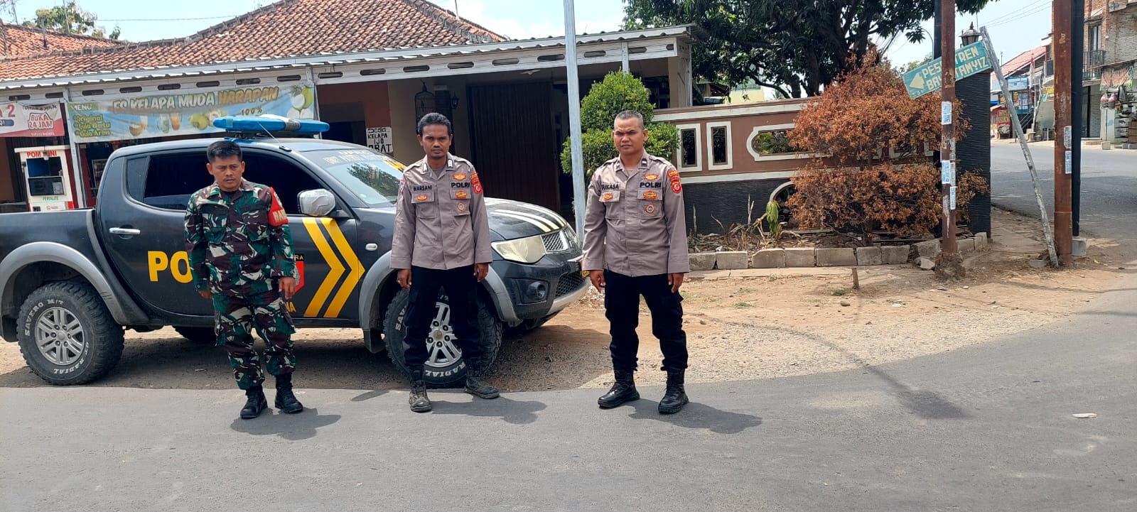Patroli gabungan melibatkan personel dari Polsek Tukdana dan anggota Koramil.