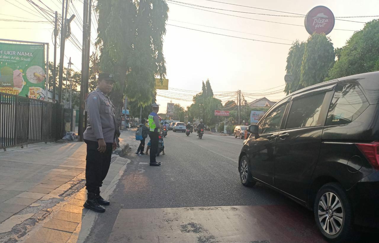 Polres Cirebon Kota. Polri hadir di tengah masyarakat untuk memberikan pelayanan , seperti yang dilakukan Bhabinkamtibmas Kelurahan Kejaksan Bripka Pendy membantu Siswa SDN Kartini menyebrang Jalan, Rabu (16/08/2023) Pagi.