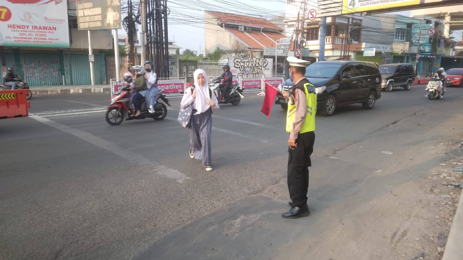 Polres Cirebon kota – Penegakan dan Pengaturan lalu lintas (Gatur Lantas) merupakan bentuk pelayanan Polri kepada masyarakat di jalan raya, antara lain mengatur pengendara untuk tertib berlalu lintas dan membantu menyeberangkan masyarakat dan anak sekolah.