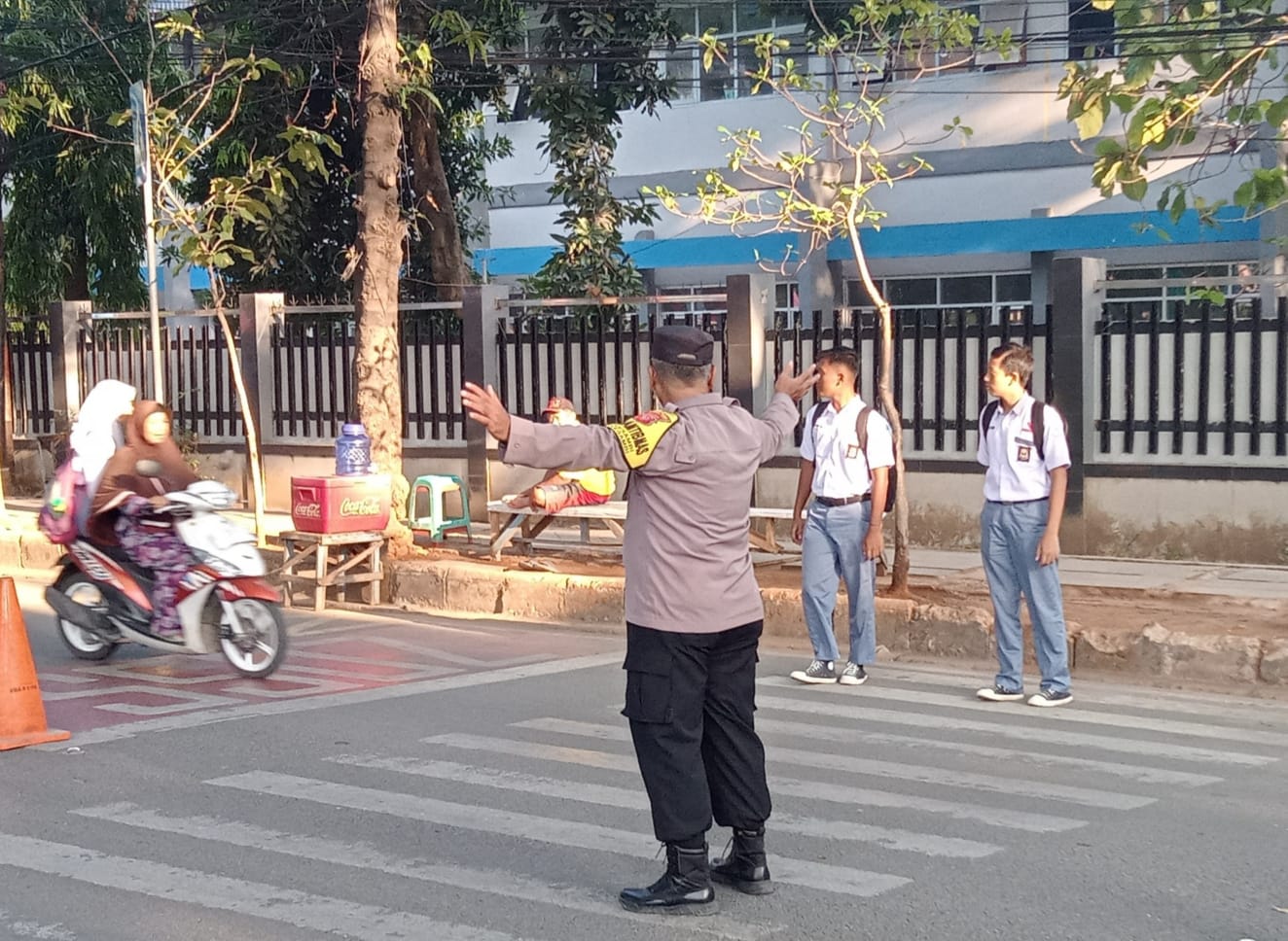 Kegiatan ini rutin dilakukan oleh anggota Polri pada jam sibuk baik di persimpangan jalan, penggalan jalan dan di depan Sekolah, seperti ini tampak anggota Polsek Utbar, Polres Cirebon Kota hadir ditengah masyarakat