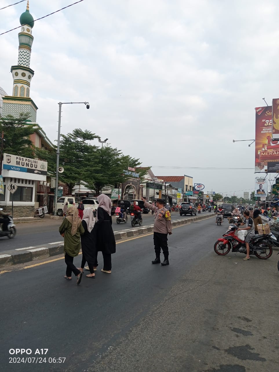 POLRES CIREBON KOTA -Penegakan dan Pengaturan lalu lintas (Gatur Lantas) merupakan bentuk pelayanan Polri kepada masyarakat di jalan raya, antara lain mengatur pengendara untuk tertib berlalu lintas dan membantu menyeberangkan masyarakat dan anak sekolah.