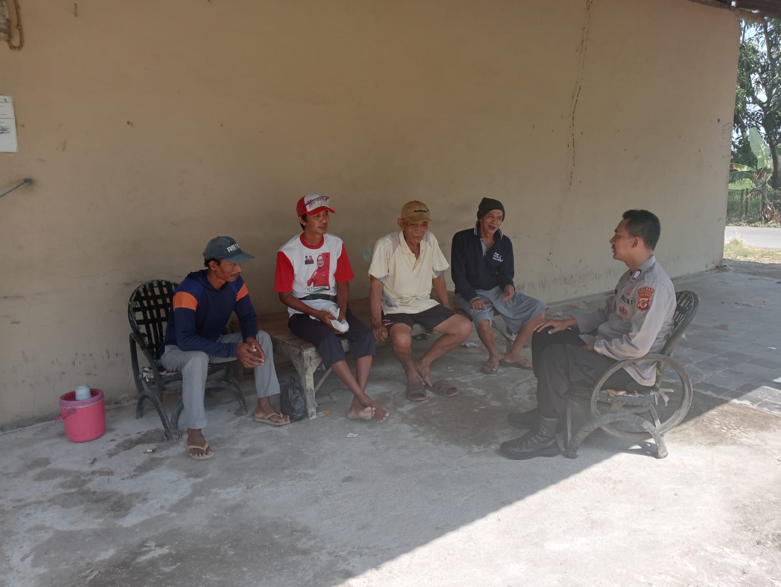 Dalam patroli sambang warga, anggota Polsek Widasari berinteraksi langsung dengan masyarakat untuk memberikan himbauan agar tetap tenang dan menjaga situasi keamanan di lingkungan mereka.