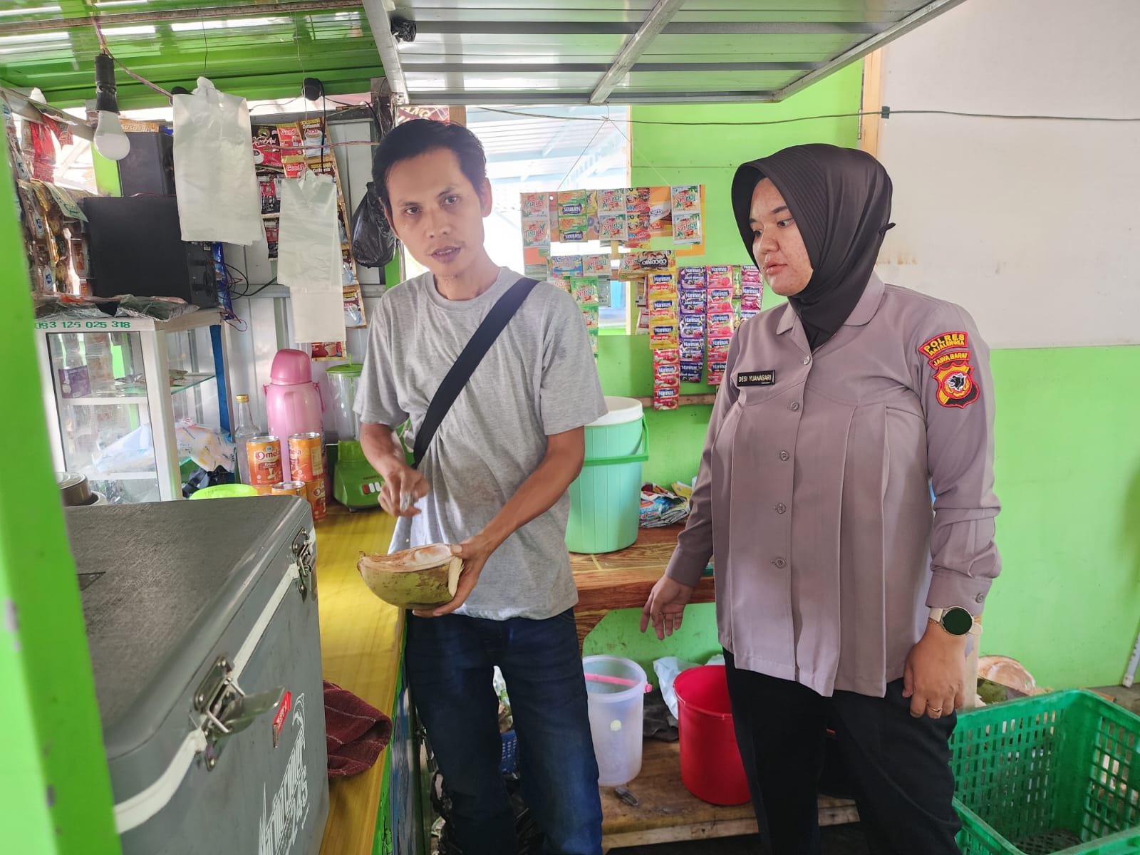 Majalengka,– Polwan Bhabinkamtibmas Polsek Majalengka Kota, Polres Majalengka, Polda Jabar, Brigadir Desi Yuanasari, melaksanakan kegiatan blusukan dengan menyambangi pedagang es kelapa muda, Sdr. Uday, yang berada di Lingkungan Dukuh Dawuan, Kelurahan Tarikolot, Kecamatan Majalengka, Kabupaten Majalengka, pada Senin (24/06/2024). Kegiatan ini merupakan bagian dari upaya Polri untuk lebih dekat dengan masyarakat serta mendengarkan langsung aspirasi mereka.