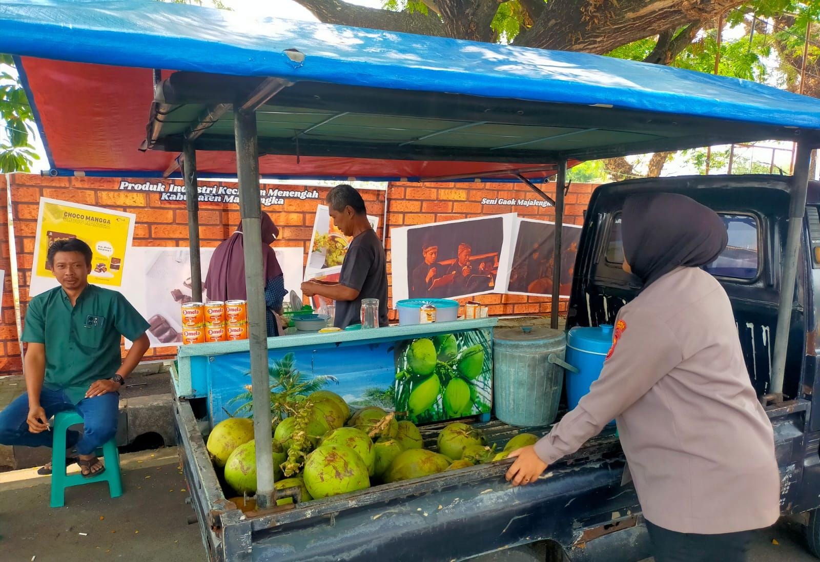 Majalengka, – Polwan Bhabinkamtibmas Polsek Majalengka Kota, Polres Majalengka, Polda Jawa Barat, Brigadir Desi Yuanasari, melaksanakan giat sambang dengan menyambangi pedagang es kelapa di Jalan Gerakan Koperasi, Majalengka. Senin (22/7/2024).