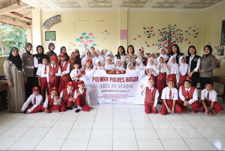 Dalam rangka Hari Jadi Polwan ke 75 Tahun, Polwan Polres Bogor Polda Jabar melaksanakan Goes To School Di SDN Islam AL Amien wilayah Kabupaten Bogor, Jumat 11 Agustus 2023.