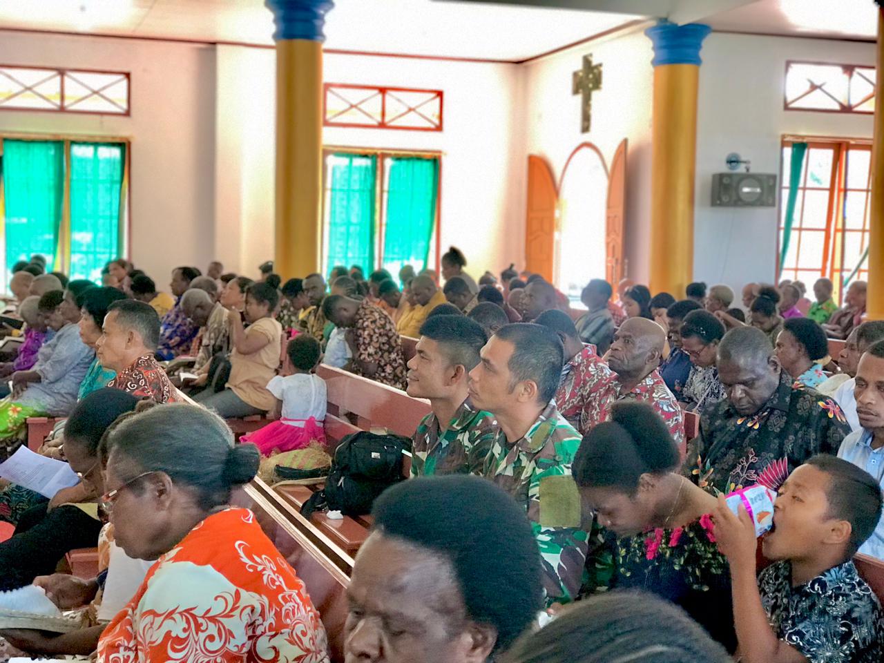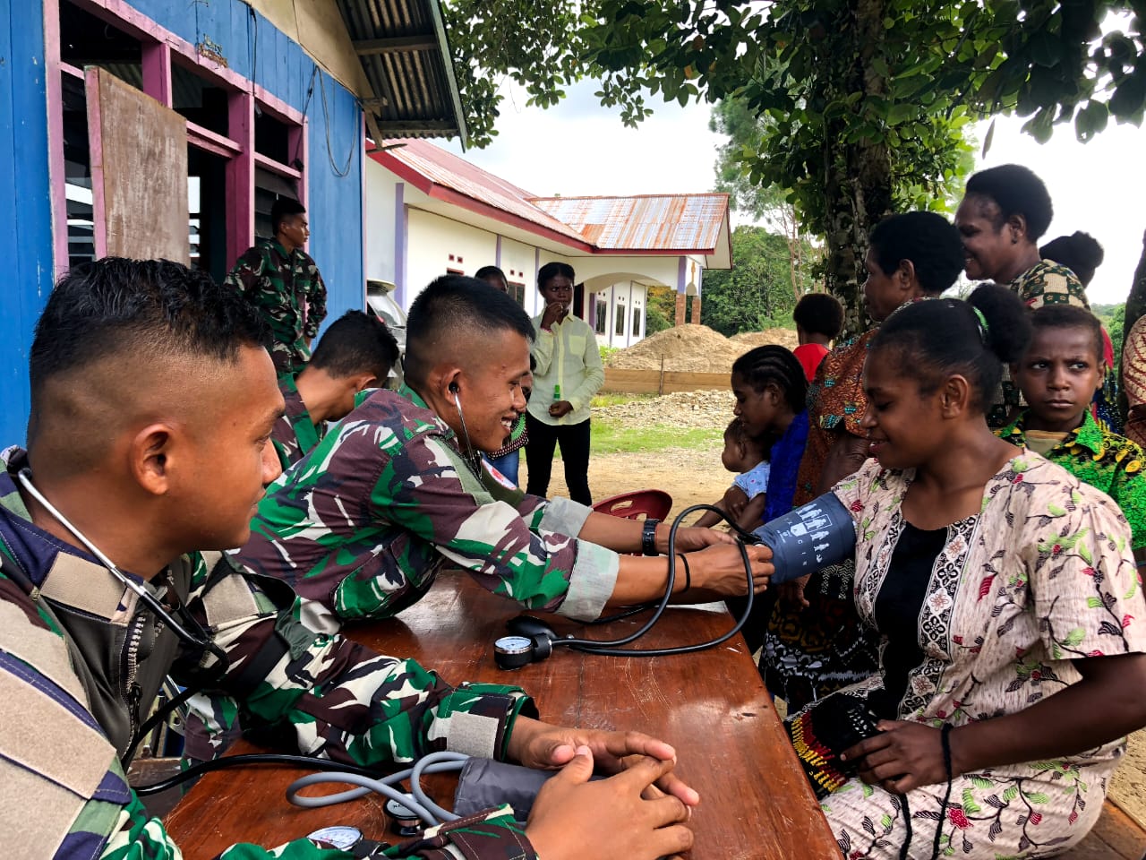 Setelah selesai melaksanakan ibadah bersama masyarakat di beberapa Gereja,kemudian Tim Kesehatan Satgas Yonif 133/YS menggelar pengobatan massal secara gratis kepada masyarakat, ini merupakan bukti pengabdian TNI serta kemanunggalan TNI di tengah masyarakat.