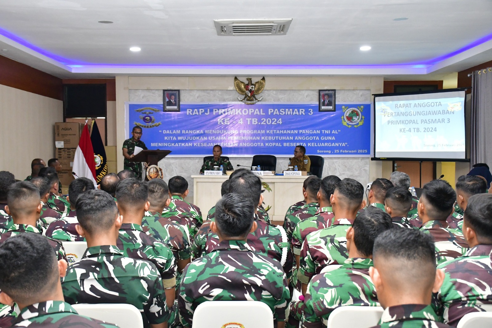 KOTA SORONG,BUSERJATIM.COM – Komandan Pasmar 3 Brigjen TNI (Mar) Andi Rahmat M., selaku Pembina secara resmi membuka Rapat Anggota Pertanggung jawaban (RAPJ) Primkopal Pasmar 3 ke-4 Tahun Buku (TB) 2024 di ruang rapat Mako Pasmar 3, Kesatrian Agoes Soebekti, Jl. Sorong-Klamono, Km.16, Distrik Klaurung, Kota Sorong, Papua Barat Daya. Selasa (25/02/2024).