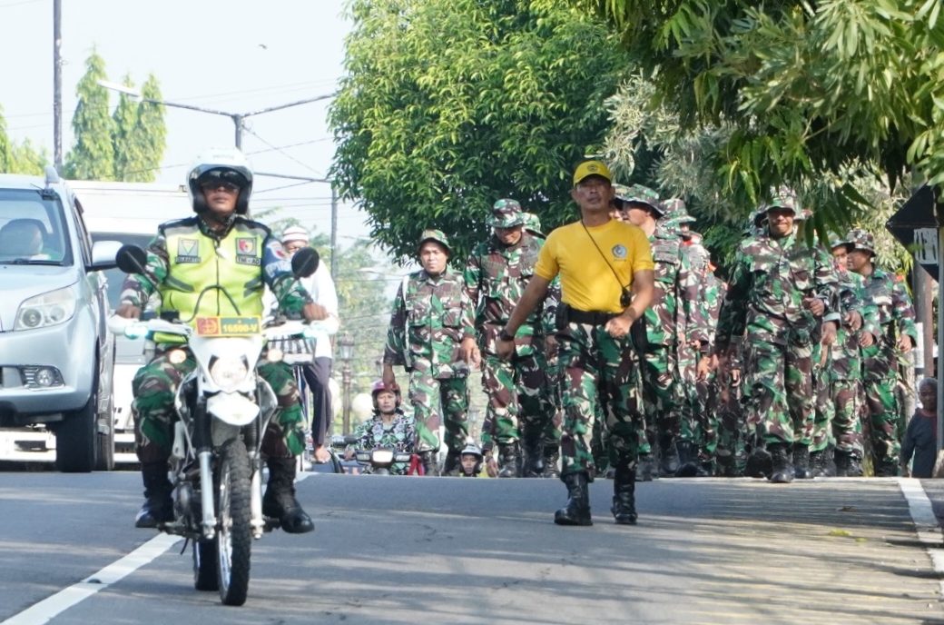 Madiun, – Matahari baru saja muncul di ufuk timur ketika nyanyian lantang itu membelah kesunyian pagi. Jalan beraspal hitam kelam mulai dipijak derap kaki ratusan prajurit. Meski napas tersengal, namun tak ada satu pun yang mundur.
