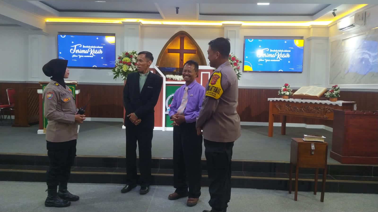 Progam Minggu kasih,Bhabinkamtimas kejaksan Polsek Utbar Polres Ciko Berikan rasa aman jemaat gereja