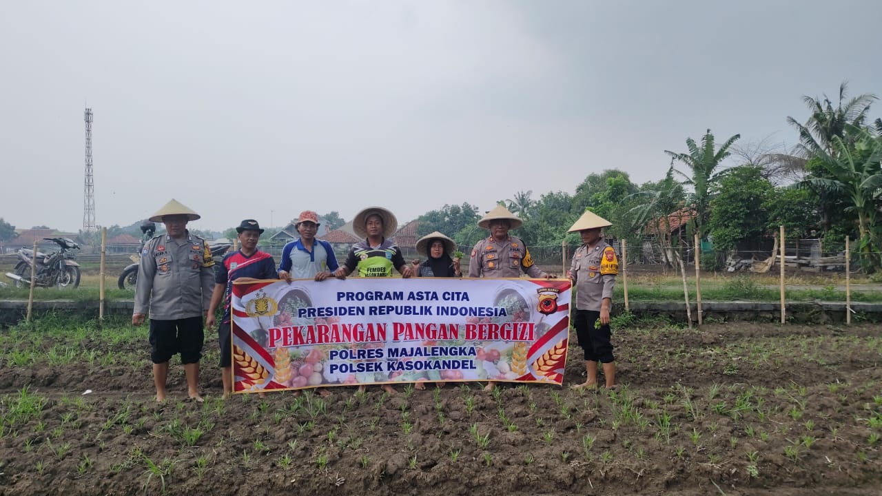 Kepolisian Sektor Kasokandel Polres Majalengka bersama Unsur Forkopincam mendukung Program ketahanan pangan bergizi dengan mengubah lahan tidur menjadi lahan produktif.