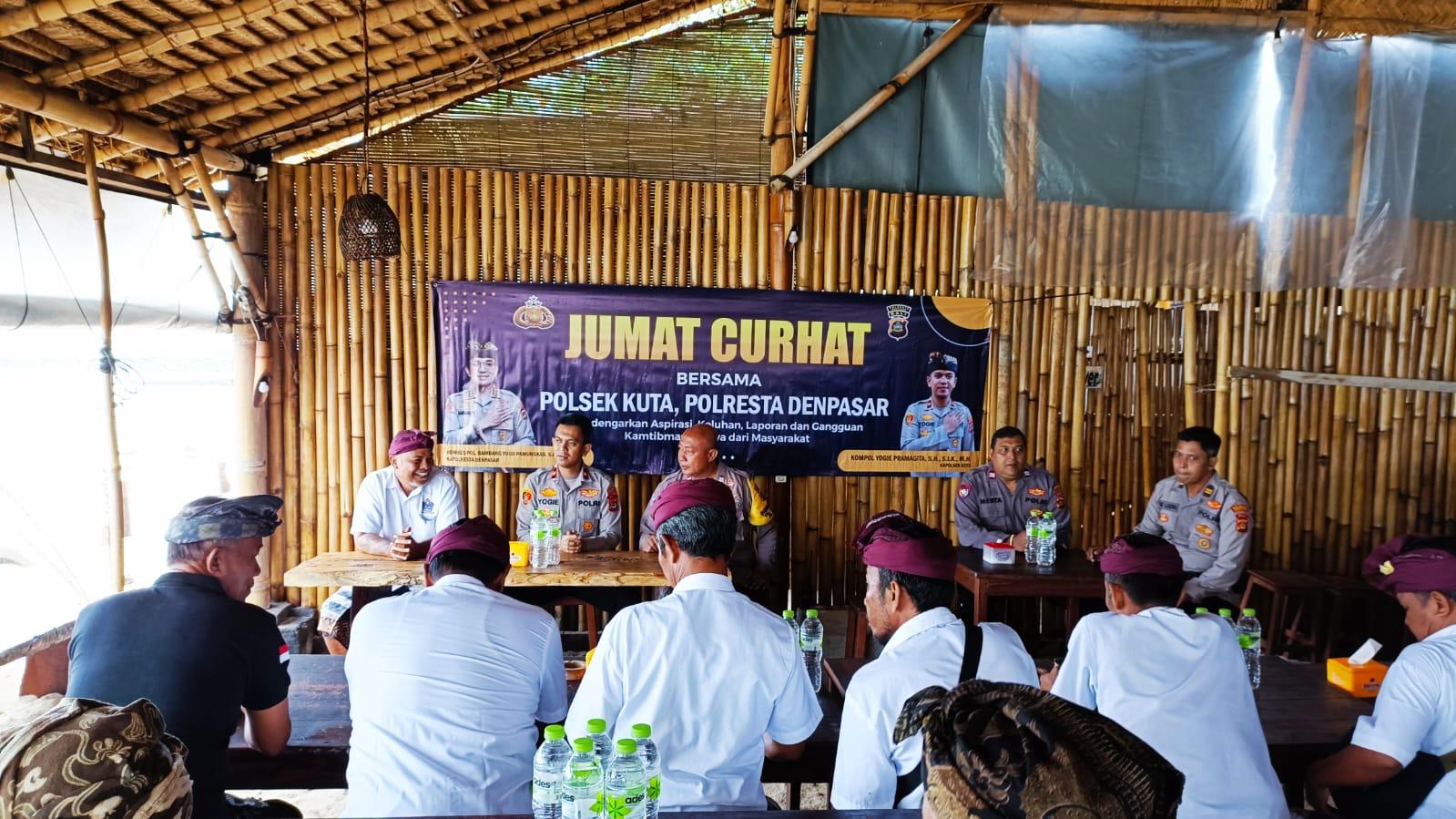 Kuta, – Jalin silaturahmi dengan Prajuru Desa Adat Kelan, Polsek Kuta mendengarkan langsung aspirasi warga, terangkum dalam Program Jumat Curhat.