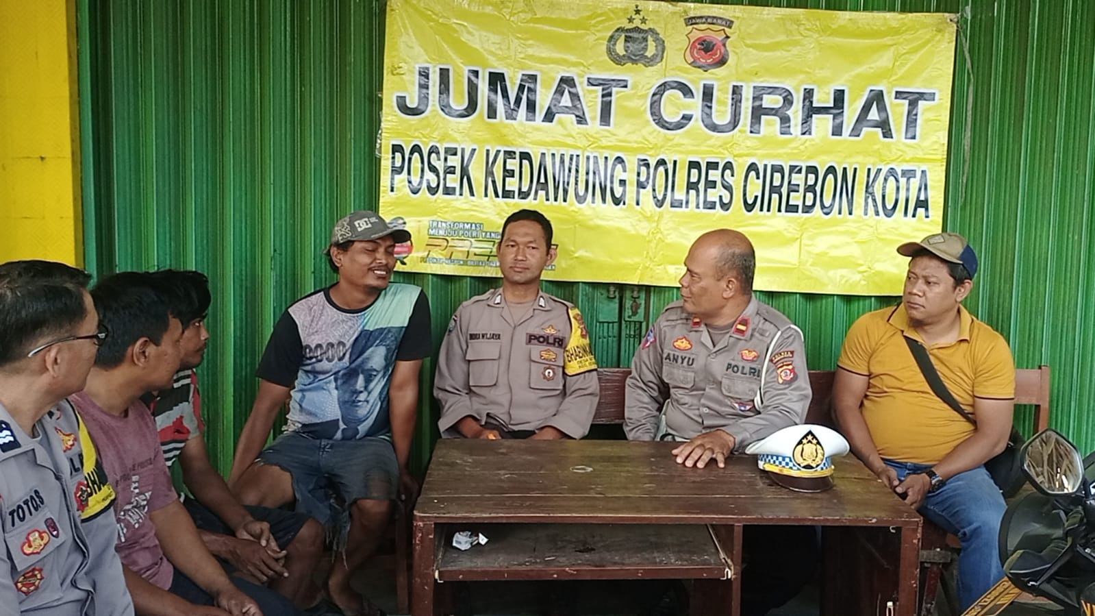 POLRES CIREBON KOTA, Kegiatan “JUMAT CURHAT” yang rutin di lakukan oleh Polsek Kedawung Polres Ciko sebagai bentuk kepedulian Polri dalam menerima dan menampung aspirasi, saran, kritik dan masukan dari warga masyarakat, sekaligus momen sampaikan pesan kamtibmas, dan kali ini kegiatan “Jumat Curhat” Polsek Kedawung di gelar bertempat di Warung Kopi Desa Kedawung Kec.Kedawung termasuk Wilkum Polsek Kedawung Polres Cirebon Kota.