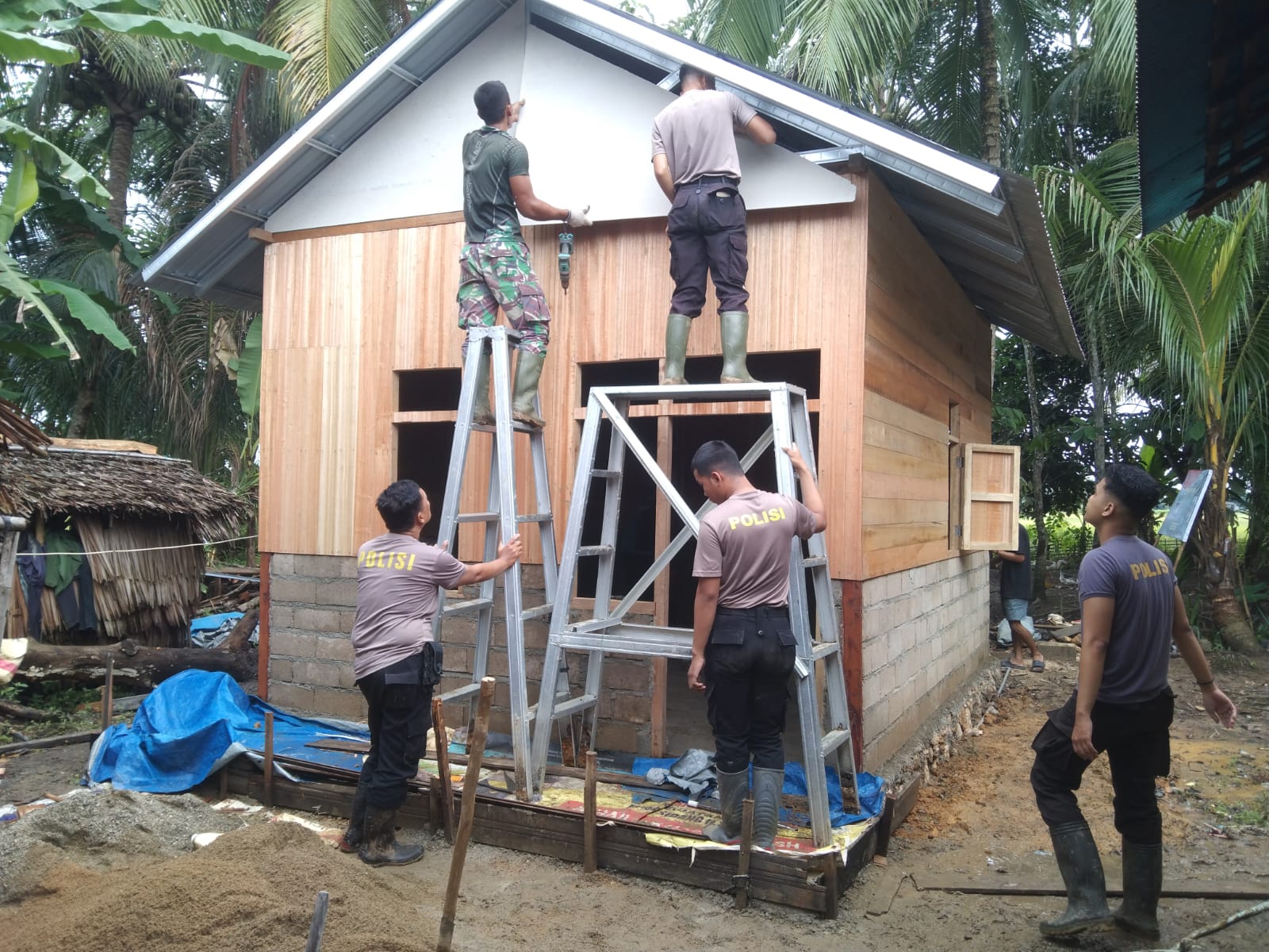 Kegiatan ini merupakan bagian penting dalam proses perbaikan rumah, memastikan struktur atap yang kokoh dan aman bagi pemilik rumah. Keterlibatan aktif anggota Satgas TMMD dalam setiap tahapan rehab RTLH ini menunjukkan komitmen TNI dalam membantu meningkatkan kualitas hidup masyarakat melalui pembangunan fisik.
