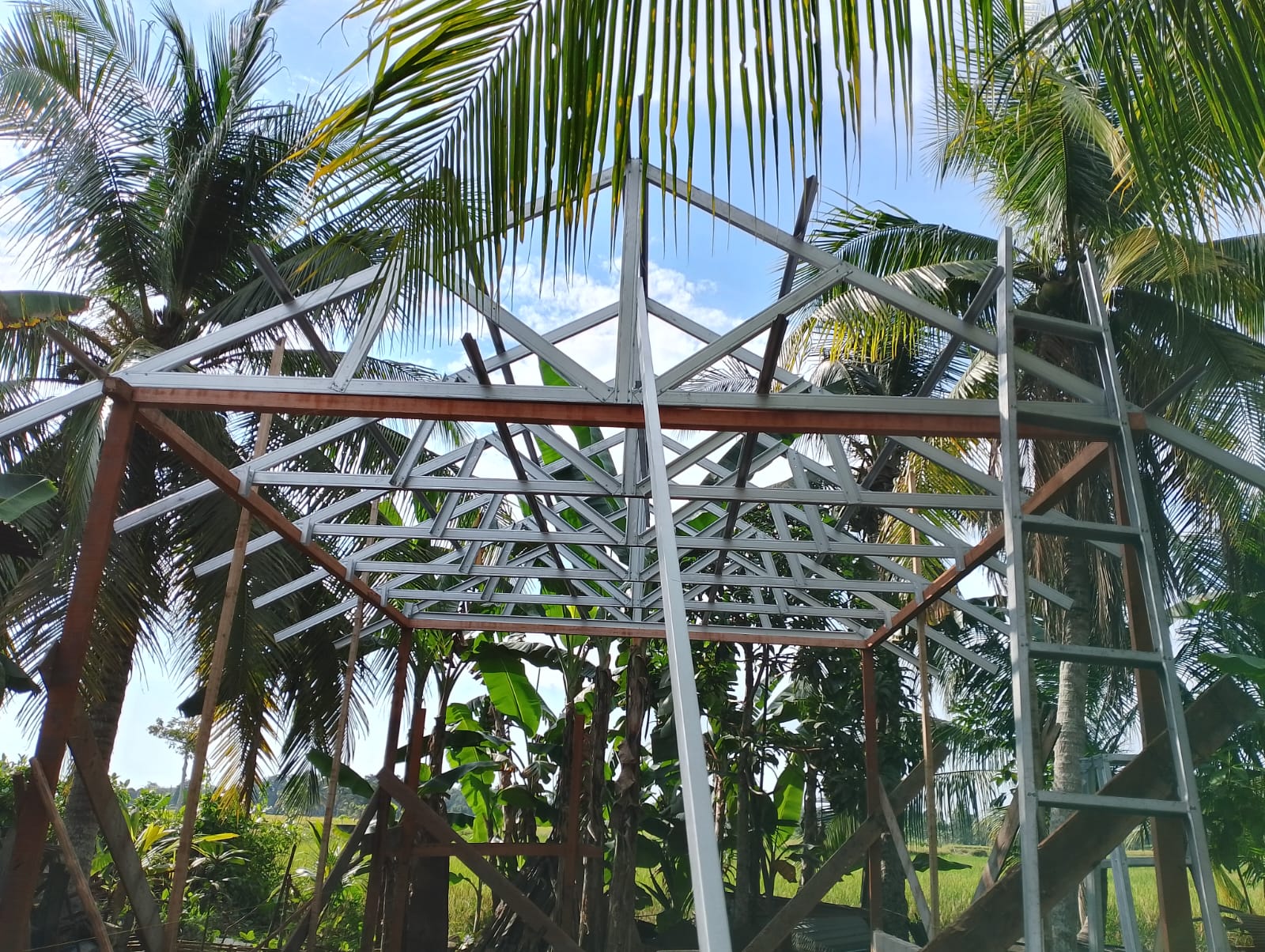 Pantauan di lokasi pada hari Sabtu, 10 Mei 2025, menunjukkan keseriusan dan ketelitian para personel TNI dan warga setempat dalam melaksanakan pembangunan. Setelah proses pembongkaran dan penataan fondasi rampung, kini struktur rangka atap mulai didirikan. Pemasangan kuda-kuda ini menjadi tonggak penting dalam proses rehab, karena akan menentukan kekuatan dan bentuk keseluruhan atap rumah.