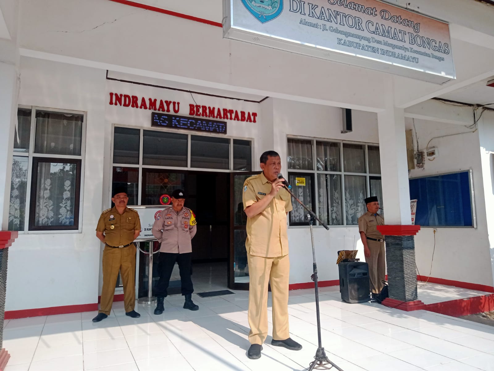 Apel gabungan bersama unsur muspika diikuti para Lurah, ASN maupun honorer Kecamatan Bongas.