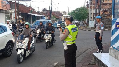 Unit Propam Polsek Kuta Utara mulai dari simpang Sunset Road, simpang Lio Square, simpang Semer, simpang Camat, simpang Berawa hingga simpang Padonan melakukan pengawasan dan mengecek kegiatan PH pagi yang di gelar personel Polsek Kuta Utara. Senin (17/7) pagi.