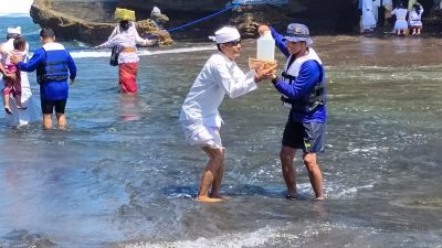 Rangkaian upacara Pujawali yang berlangsung pada hari Rabu tanggal 16 Agustus 2023 di Pura Luhur Tanah Lot, Desa Beraban, Kecamatan Kediri, Kabupaten Tabanan. Satuan Pol Airud Polres Tabanan yang dipimpin Kasat Pol Airud Polres Tabanan, tampak melakukan pengamatan di pantai Tanah Lot, serta memberikan himbauan Kamtibmas kepada para pemedek atau masyarakat yang akan bersembahyang. Pada saat air laut pasang seperti pada pukul 09.00 wita dimana pelaksanaan upacara Pujawali harus sudah dimulai, personil satuan Pol Airud Polres Tabanan bersama dengan lifeguards, dan Pecalang Pura luhur Tanah Lot, membantu para pengempon Pura, pemangku dan penganceng dari Puri Kediri serta pengenter karya, menyeberangkan dengan menggunakan rubber boat.