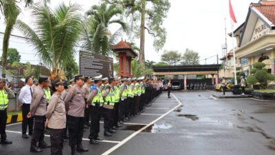Kapolres Badung AKBP Teguh Priyo Wasono,SIK pimpin apel kesiapan Kegiatan Rutin Yang Ditingkatkaan (KRYD) dalam rangka cipta kondisi menjelang dilaksanakan operasi ketupat agung-2023 pada hari Senin, (10/4) pukul 08.00 WITA, di halaman Mapolres Jalan Kebo Iwa No 1, Kecamatan Mengwi, Kabupaten Badung.