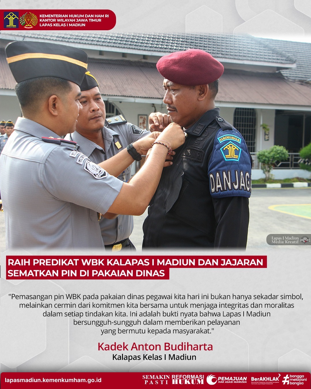 Raih Predikat WBK Kalapas I Madiun Dan Jajaran Sematkan Pin di Pakaian Dinas