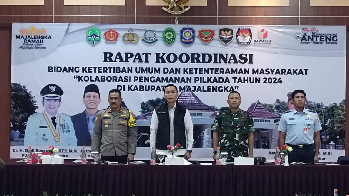 Majalengka || Dandim 0617 Majalengka Letkol Inf Dudy Pilianto menghadiri rapat koordinasi bidang ketertiban umum dan ketentraman masyarakat kolaborasi pengamanan Pilkada serentak Tahun 2024 di Kabupaten Majalengka.
