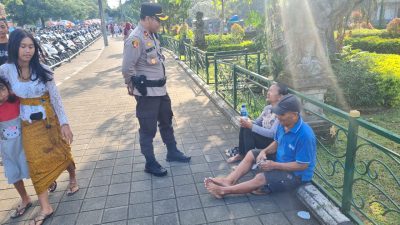 Dalam kegiatan tersebut petugas jaga melaksanakan dialogis dengan pengunjung yang sedang menikmati keindahan panorama obyek wisata Taman Ayun untuk bersama sama menjaga keamanan dan ketertiban lingkungan