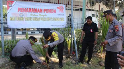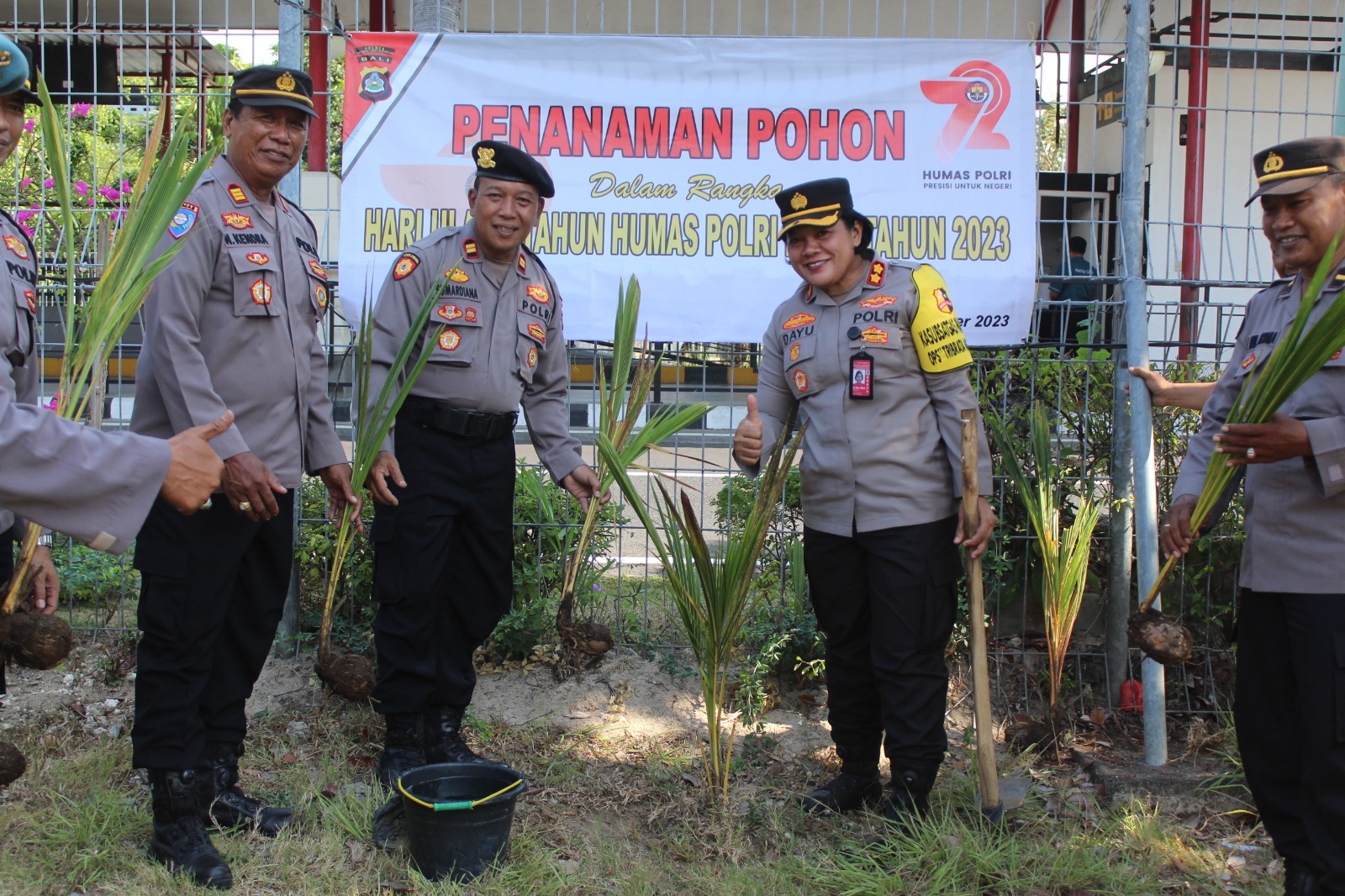 Menyambut Hari Ulang Tahun Humas Polri ke-72 tanggal 30 Oktober 2023, Polres Kawasan Bandara I Gusti Ngurah Rai melakukan serangkaian kegiatan bakti sosial berupa penanaman pohon di depan Pura Padmasana Gedung GOI Bandara I Gusti Ngurah Rai, jumat (13/10/2023).