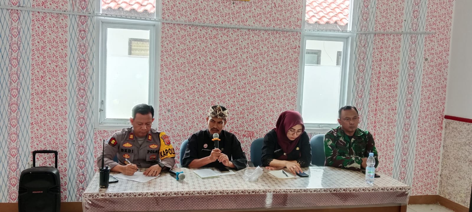 Rapat berlangsung di Aula Kantor Kecamatan Balongan dan dihadiri oleh berbagai pihak terkait, termasuk Sekmat Balongan, Baman S.pd.SD, Kepala Puskesmas Balongan, drg. Nova Natali, serta perwakilan dari Koramil 1601/Indramayu, Kepala UPTD, Kepala Desa se-Kecamatan Balongan, Ketua Bumdes, pelaku usaha UMKM, dan peternak setempat.