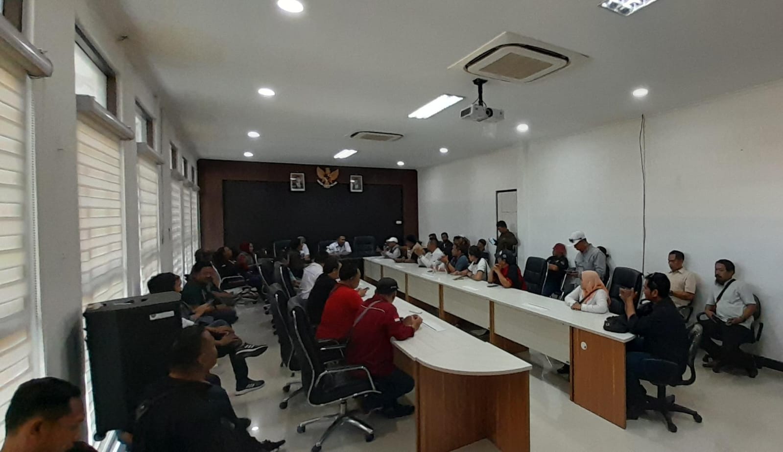 Setelah diterima di ruang rapat pemda oleh perwakilan Bupati yakni Kadis Kominfo dan Kasatpol PP beserta jajaran, kemudian perwakilan Jurnalis menyampaikan beberapa pesan yang intinya bebaskan kedua wartawan yang telah ditangkap.