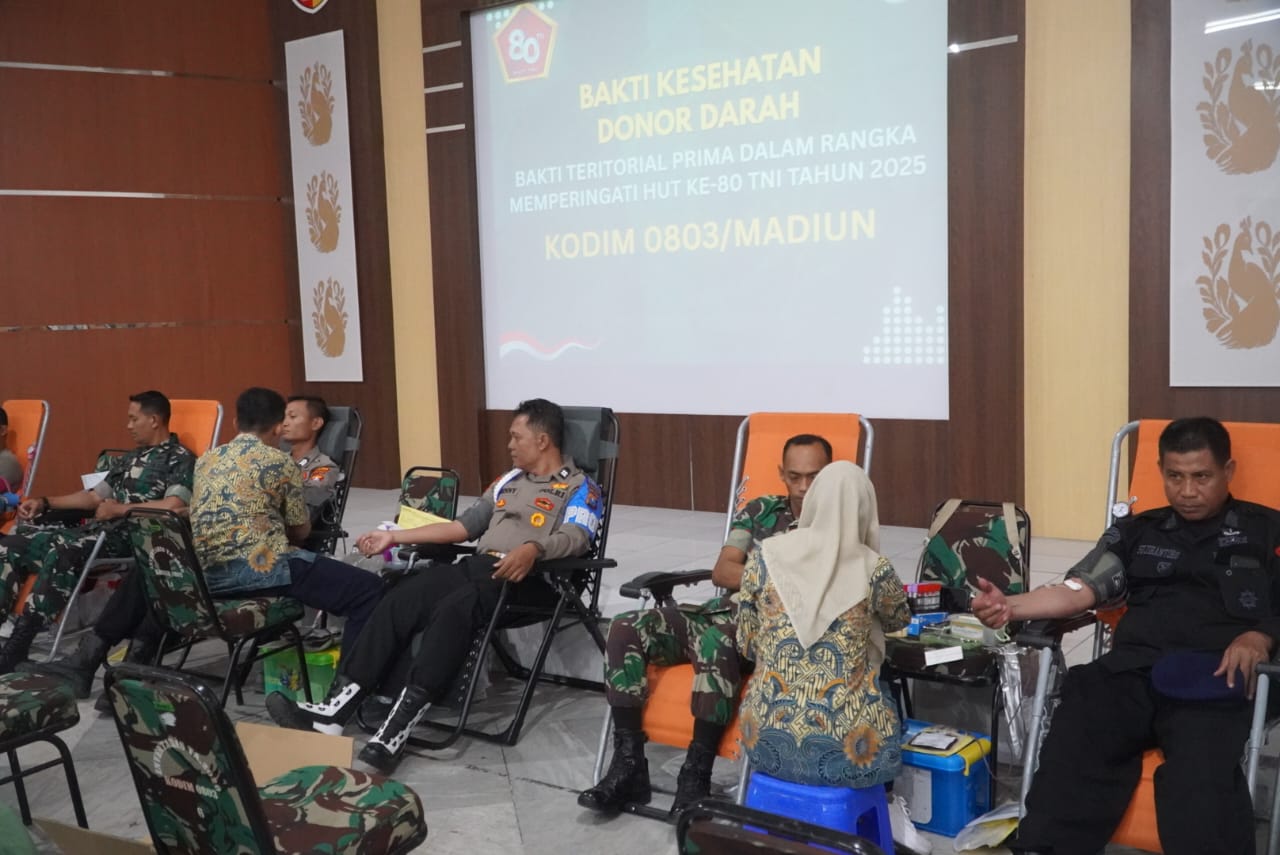 Kegiatan ini digelar dengan menggandeng Palang Merah Indonesia (PMI) Kota dan Kabupaten Madiun, serta diikuti oleh prajurit TNI, Polri, hingga ASN. Antusiasme peserta begitu terlihat, menegaskan bahwa kepedulian terhadap sesama adalah nilai luhur yang terus terjaga.