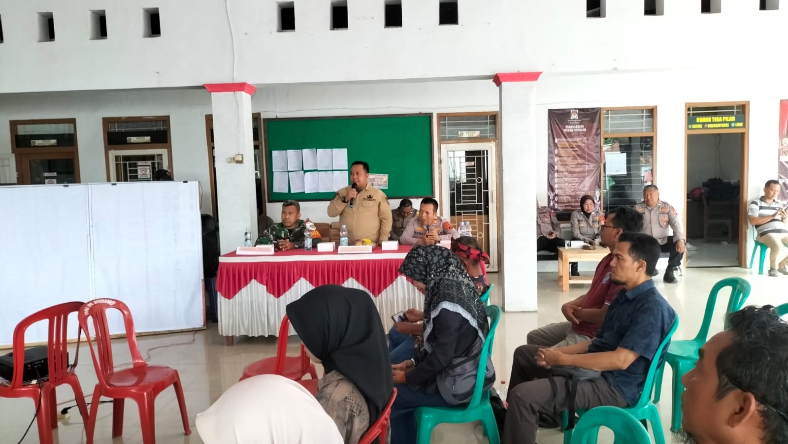 Kapolsek Sindang, AKP H. Suhendi, SH, MH, turut hadir bersama unsur Forkopimcam, termasuk Camat Sindang, Ketua PPK, Ketua Panwascam, serta saksi dari pasangan calon dan partai politik.