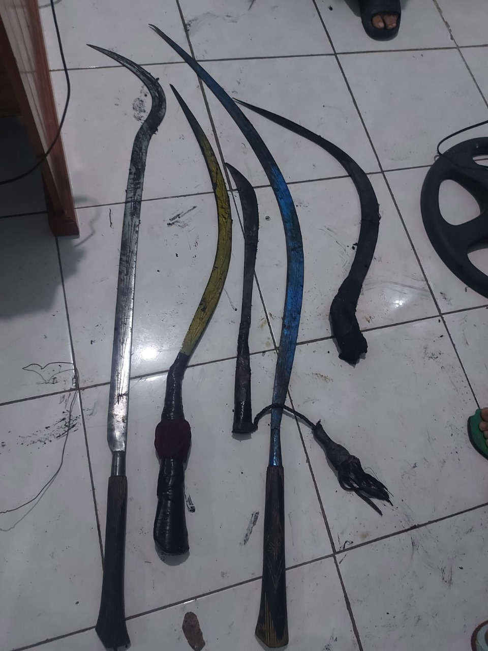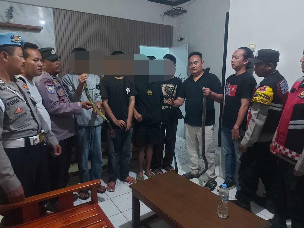 Mereka langsung diamankan, sementara senjata tajam yang disembunyikan berhasil ditemukan oleh petugas.