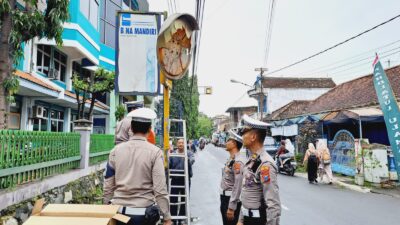 BUSERJATIM.COM || KEDIRI KOTA – Menindaklanjuti Program Jumat Curhat ada beberapa saran dan masukkan Warga Rejomulyo Polres Kediri Kota melalui Satlantas Polres Kediri Kota melaksanakan kegiatan pemasangan rambu yang rusak atau cermin cembung pada lokasi padat arus lalu lintas yang berada di kawasan Kampus IAIN di Simpang 3 Jalan Sunan Ampel Kelurahan Rejomulyo, Kota Kediri, Jawa Timur, Kamis lalu pukul 12.00 WIB.