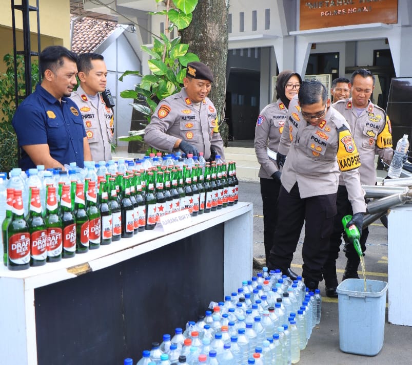 NGAWI – Polres Ngawi Polda Jatim telah mengamankan ribuan liter miras (minunan keras) selama setahun, dari bulan Januari hingga Desember 2024.