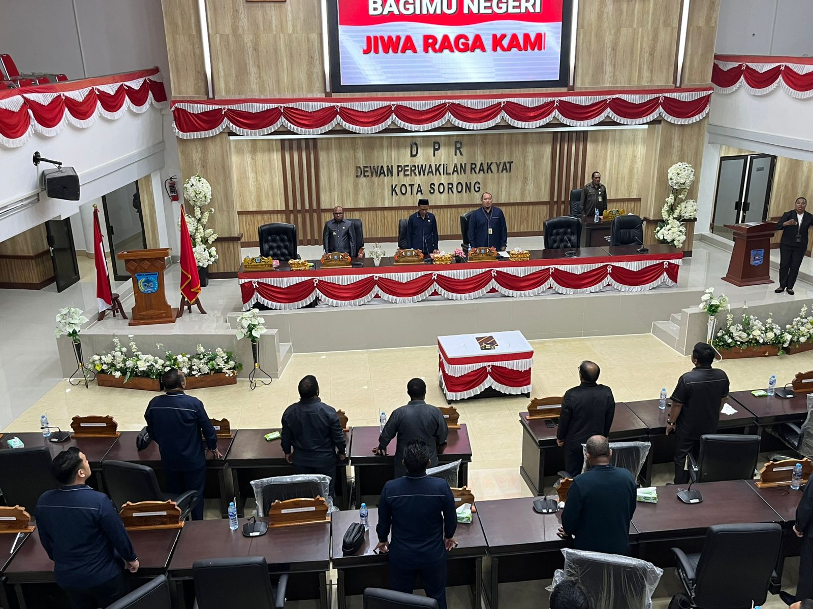 Rapat paripurna tersebut dibuka langsung oleh Wakil Ketua I DPRK Kota Sorong, Syahrir, dan dihadiri oleh Wali Kota Sorong, Septinus Lobat, seluruh anggota DPRK, serta perwakilan dari seluruh Organisasi Perangkat Daerah (OPD) di lingkungan Pemerintah Kota Sorong.