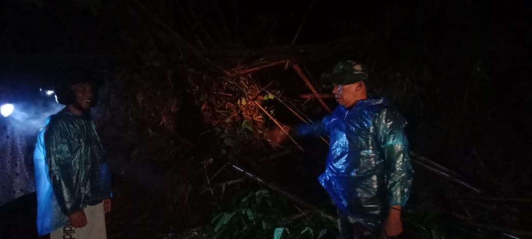 Peristiwa itu terjadi pada hari Selasa sekitar pukul 19.30 WIB kemarin. Rumpun bambu longsor menyebabkan akses jalan kedua desa tidak bisa dilewati roda 4.