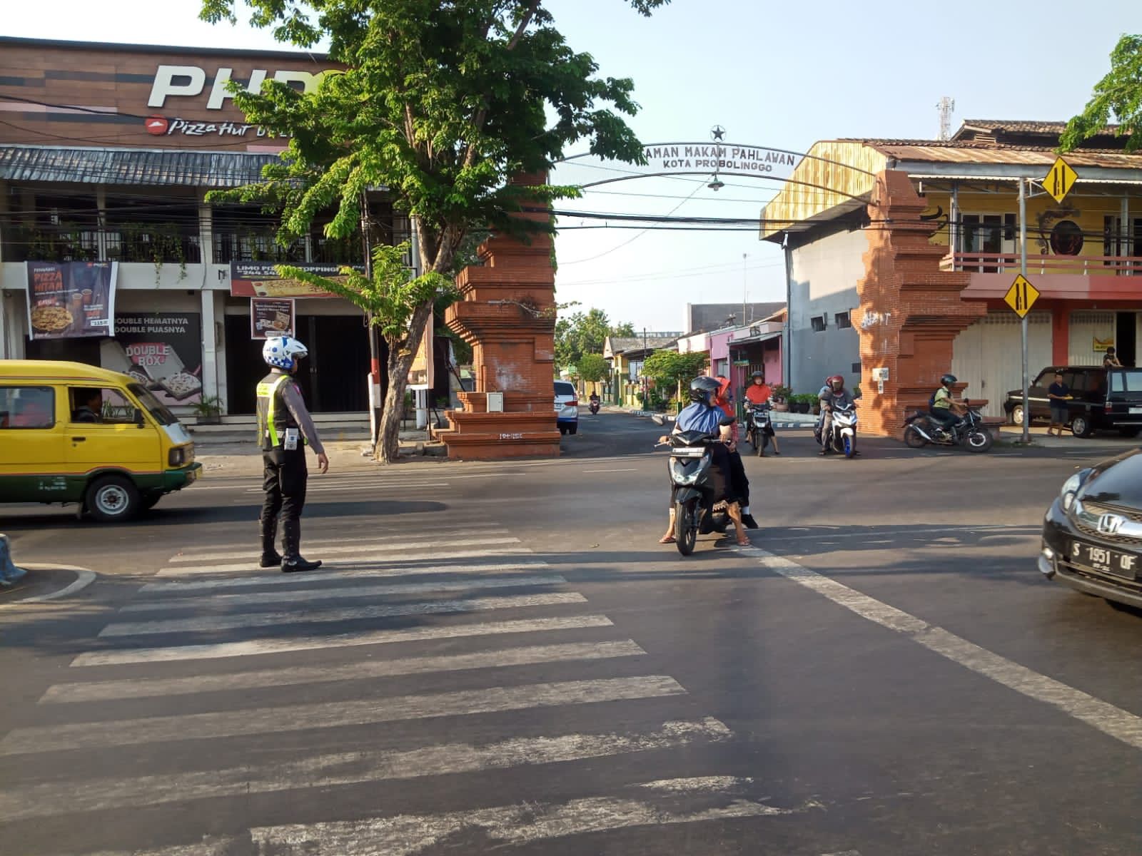 PROBOLINGGO, BUSERJATIM.COM – Kegiatan satlantas polres Probolinggo kota di pagi hari bertujuan amankan masyarakat penguna jalan raya supaya merasa aman dan nyaman saat di jalan Pengamanan dan pengaturan arus lalu lintas merupakan salah satu bagian tugas pokok Satuan lalu Lintas (Satlantas) , di ruas jalan jalan yang berada di satu wilayah hukum polres probolinggo kota . Seperti yang dilakukan oleh Bripka Darto dan Bripda Rizhal yang melaksanakan tugas rutin sebagai bagian dari rasa tanggung jawab demi terciptanya wilayah Probolinggo kota aman, lancar dan terkendali.