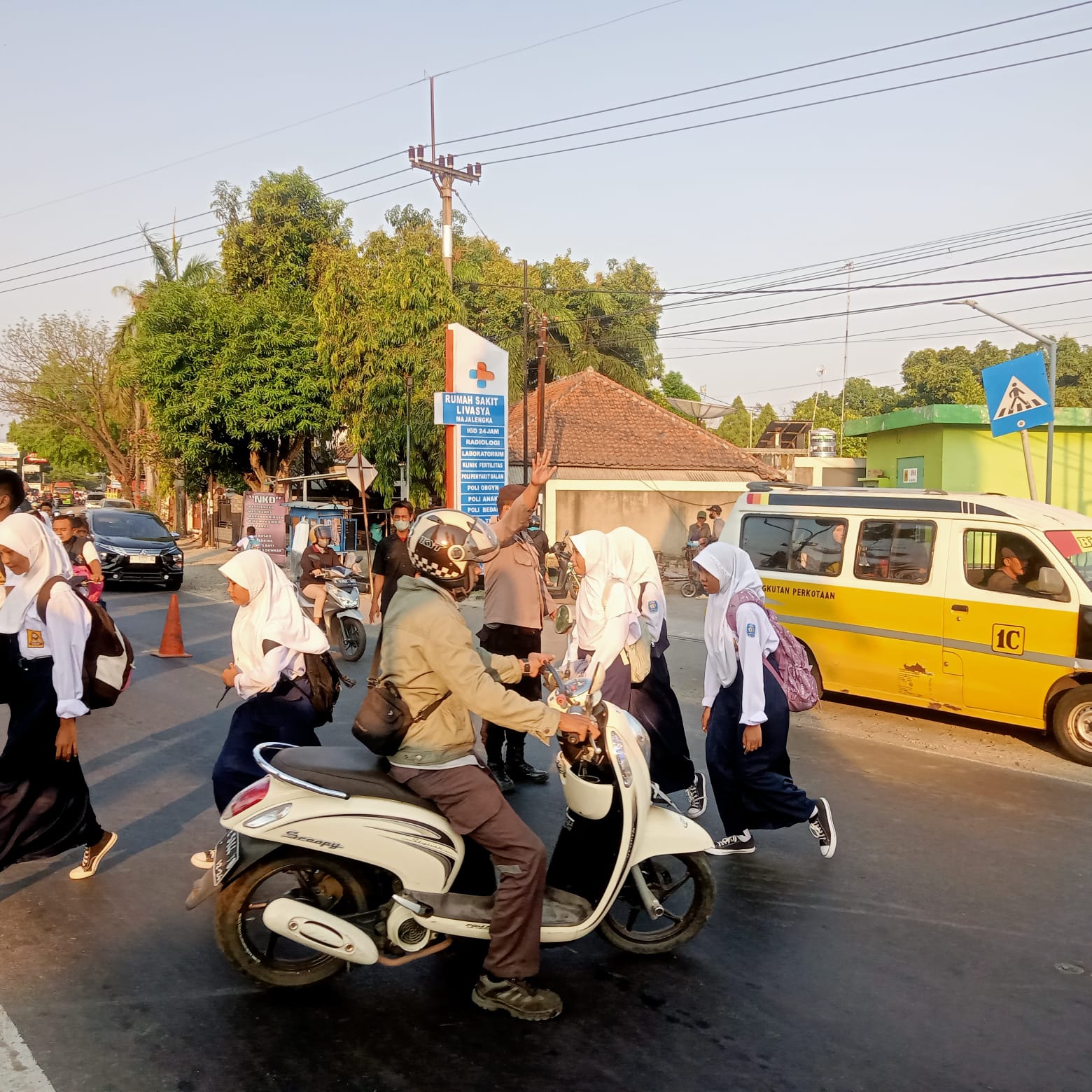 Seiring dengan hal tersebut, jajaran Polsek Kdp Polres Majalengka Polda Jabar Bripka Bib Abi Musyadat melaksanakan gatur lalin pagi di depan SMPN 1 menyebrangkan anak-anak sekolah. Rabu (18/9/2023).