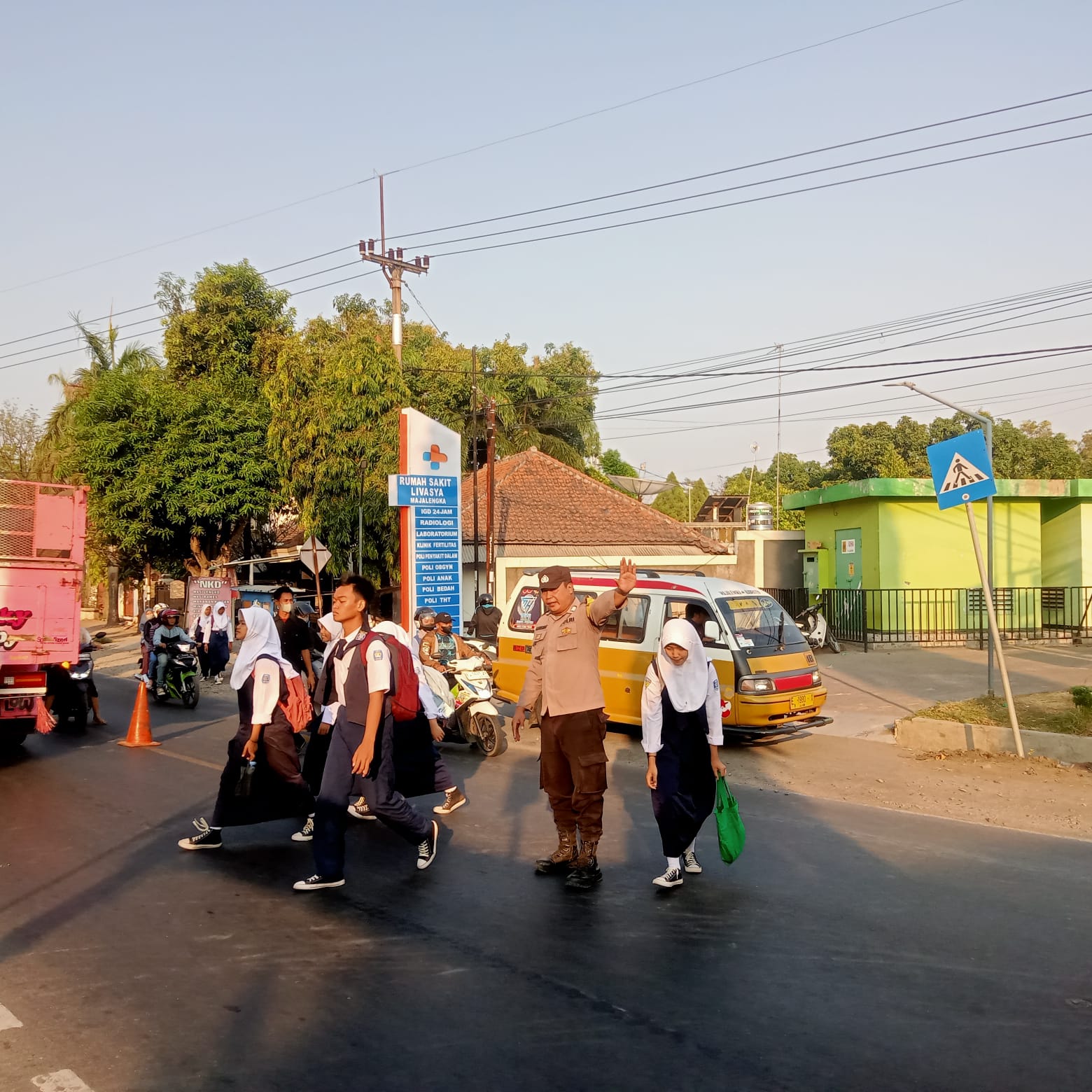 Seiring dengan hal tersebut, jajaran Polsek Kdp Polres Majalengka Polda Jabar Bripka Bib Abi Musyadat melaksanakan gatur lalin pagi di depan SMPN 1 menyebrangkan anak-anak sekolah. Rabu (18/9/2023).