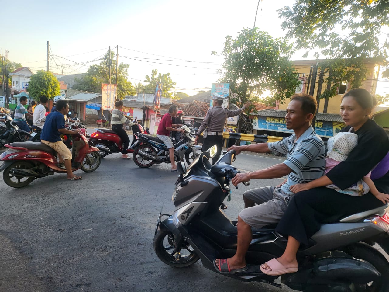 Indramayu – Unit Lalulintas Polsek Lohbener jajaran Polres Indramayu Polda Jabar melaksanakan pengaturan lalulintas pagi di Simpang Tiga Sindang Kerta, Kabupaten Indramayu. Rabu pagi (3/7/2024)