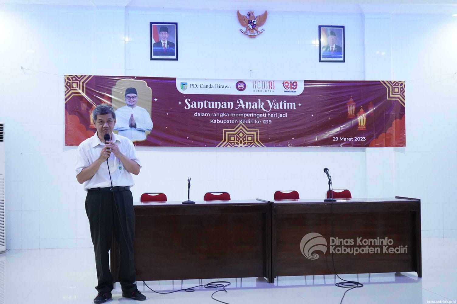 Mengawali acara tersebut, Direktur PD Canda Birawa Kabupaten Kediri Hans Sidharta menjelaskan, kegiatan ini merupakan rangkaian peringatan Hari Jadi Kabupaten Kediri ke 1219 tahun 2023 dengan santunan anak yatim.