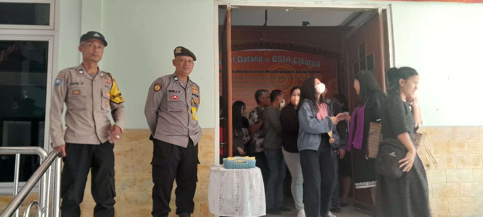 Polres Bogor – Polsek CSR Polres Bogor, Bhabinkamtibmas Kel.Cisarua Polsek CSR Polres Bogor Aiptu Saepul.m bersama anggota Patroli Polsek CSR AIPTU willy melaksanakan kegiatan sambang Dan pengamanan tempat ibadah di gereja rsja levin Kel Cisarua dengan Menciptakan. Rasa aman Pd masyarakat binaan. (4/9/2023)
