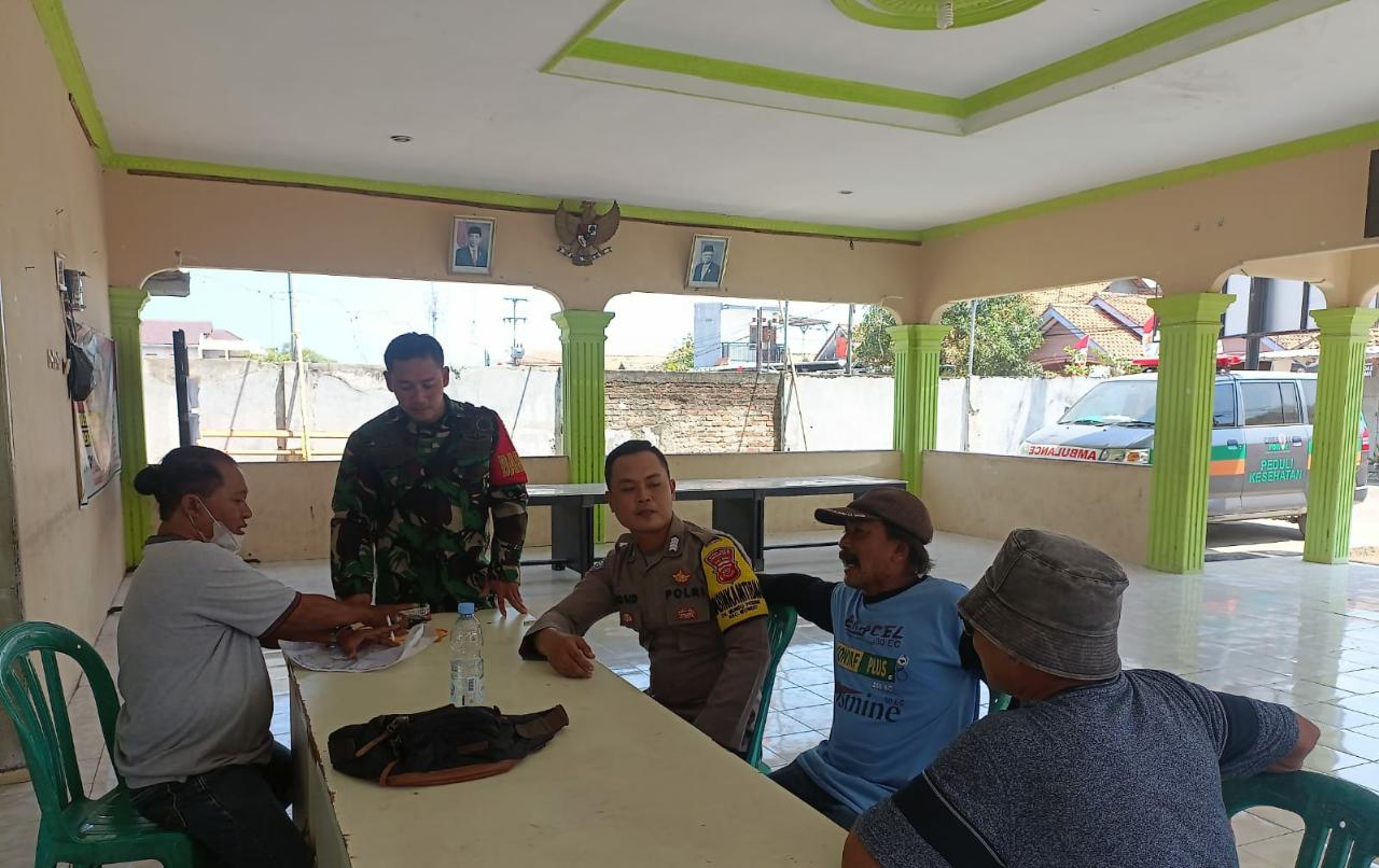 Bripka Rosid Bhabinkamtibmas Desa Suranenggala Polsek Mundu Polres Cirebon Kota Polda Jabar jalin kordinasi dan komunikasi bersama pernangkat desa serta Tomas dan warga masyarakat di balai Desa Mundu Pesisir , selasa (15/08/2023 ).