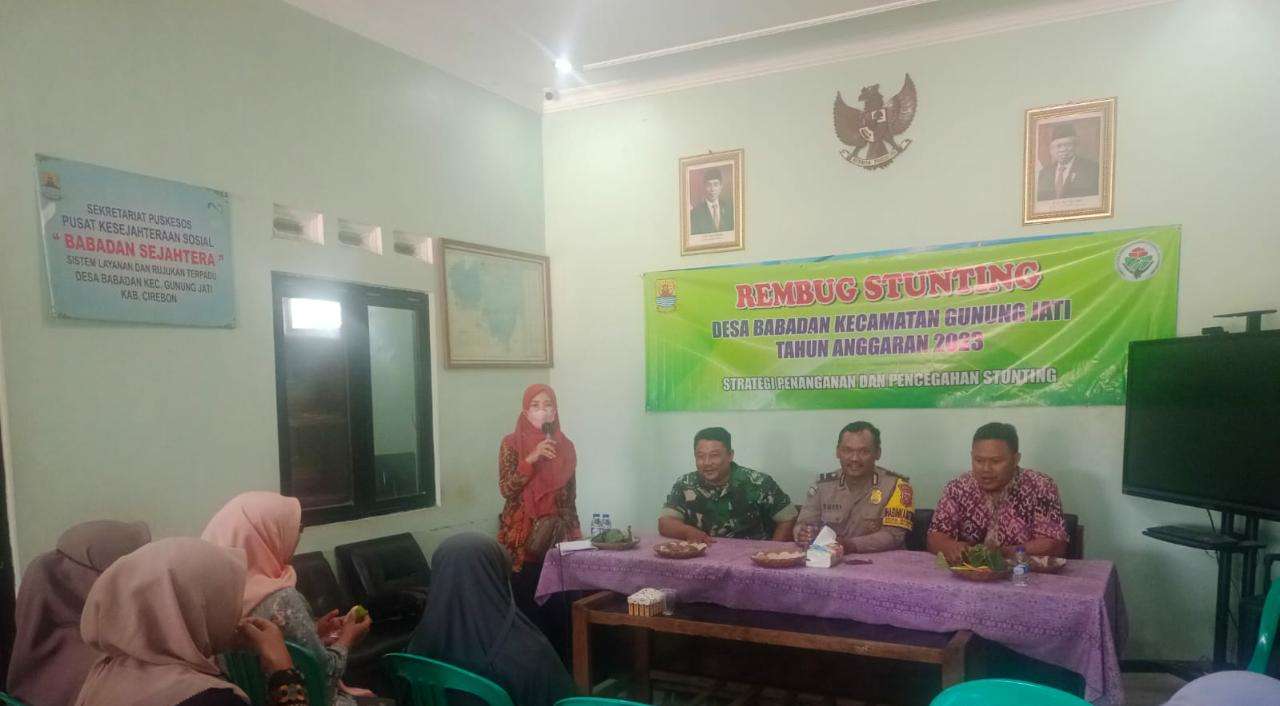 POLRES CIREBON KOTA,-Bhabinkamtibmas Desa Babadan Aipda Suedi menghadiri Kegiatan Rembug Stunting yang dilaksanakan oleh pemerintahan desa Babadan, dalam upaya penanganan dan pencegahan stunting di Desa Babadan, Jumat (08/09/2023).