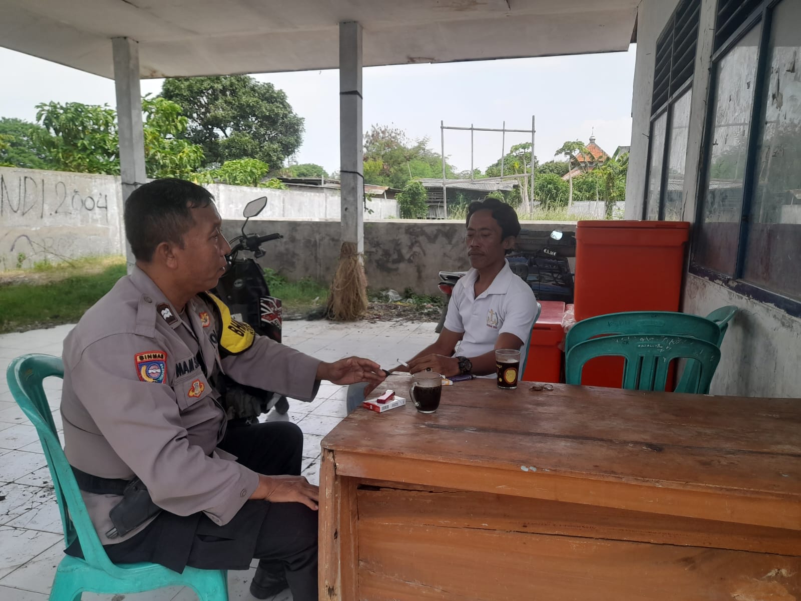 POLRES CIREBON KOTA,- Jalin komunikasi di wilayah binaan, Bhabinkamtibmas Kelurahan Kesenden Polsek Utbar Polres Cirebon Kota Polda Jabar Aiptu Imam Safei , Sambang warga pesisir RW 03 Samadikun Kelurahan kesenden Cirebon kota dengan menyampaikan himbauan Kamtibmas, cooling system Pilkada damai, Kamis (10/10/2024).