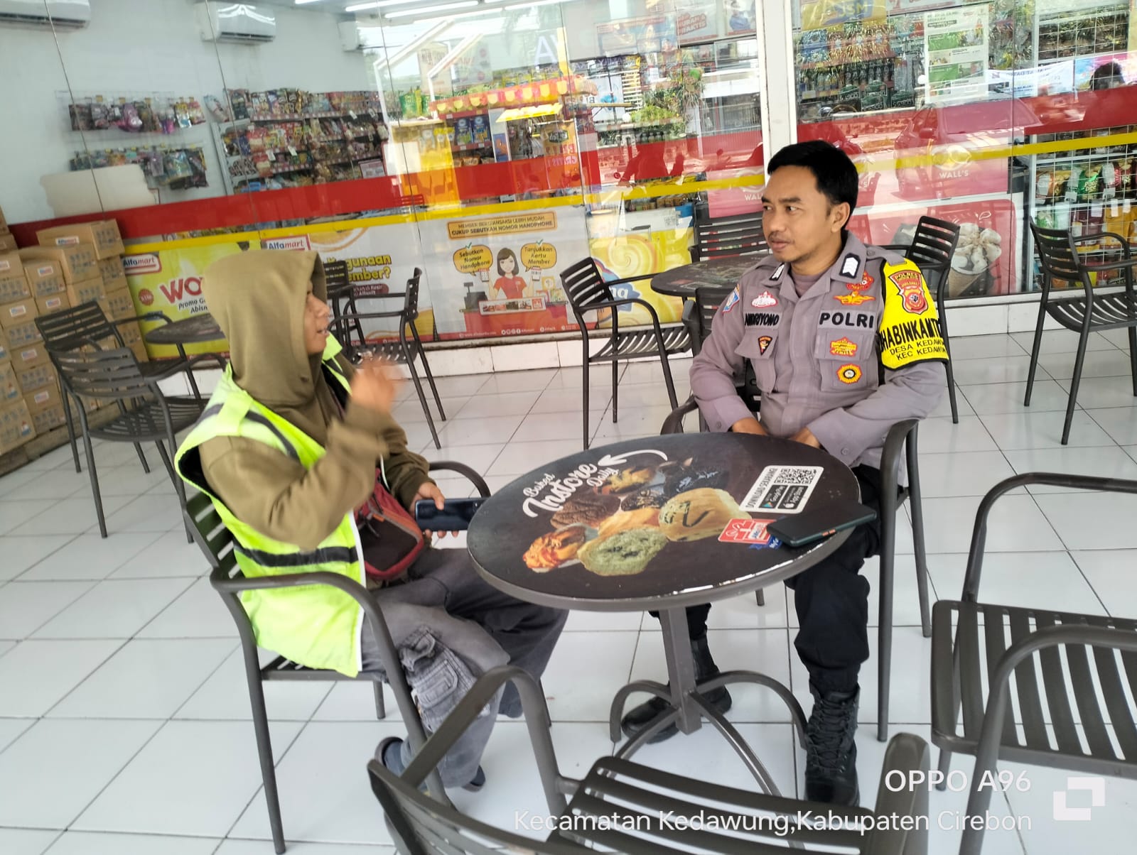 POLRES CIREBON KOTA,-Pastikan aman aman di wilayah desa binaanya. Bhabinkamtibmas Desa Kedawung Polsek Kedawung Polres Cirebon Kota Polda Jabar Bripka Andriyono menyambangi juru parkir mini market Desa Kedawung kecamatan Kedawung Cirebon Kota himbau Kamtibmas dalam rangka Ops Mantap Praja tahun Lodaya 2024, Minggu (01/09/2024).